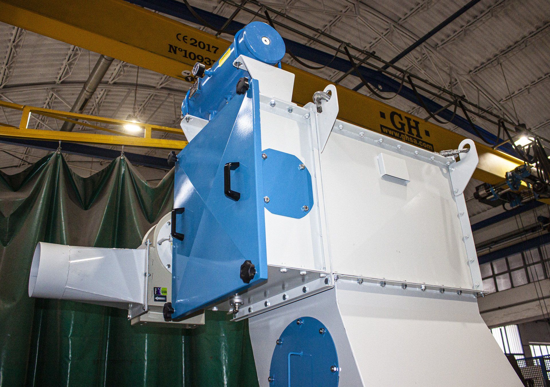 A lower hopper is often incorporated where the powders captured in the bags are decanted, and an airlock that removes the decanted material to its final destination.