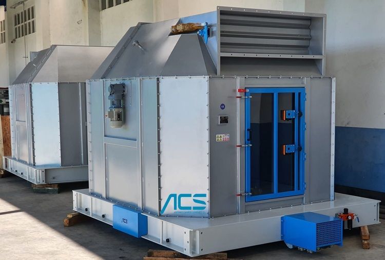 -Vaciado del enfriador mediante rasera dosificadora de láminas deslizantes accionado por un cilindro neumático y finales de carrera electrónicos para regulación de caudal.